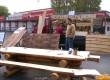 Un rêve se réalise, et pour ça, je vais avoir le meilleur des compagnons, mon fils Olivier à qui j'ai transmis la passion du bois ni clous ni vis du bois que du bois , des troncs que l'on va assembler en se pliant aux caprices de leur formes.Si les trappeurs utilisaient la hâche et un passe partout, la tronçonneuse remplaçera la hâche,cela m'ennuie un peu mais c'est tellement pratique .La base "première grume"est en méléze pour ne pas avoir de pourriture, le reste en peuplier et le haut en pin sylvestre pour la flexibilite, la toiture est en planches de méléze
